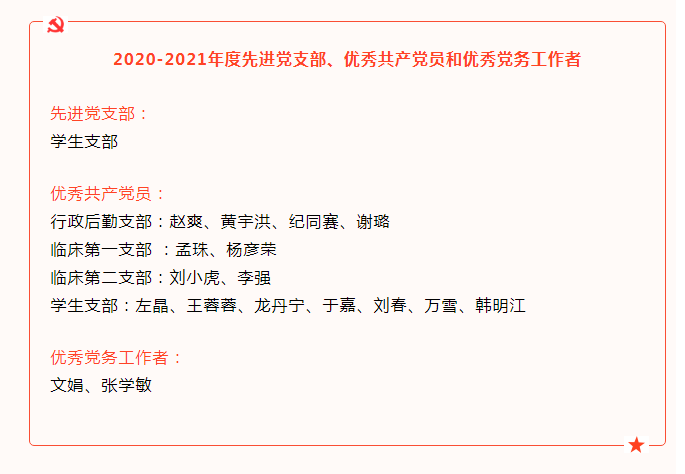 随后中共成都中医药大学眼科学院/附属眼科医院党委委员周华祥宣读《关于表彰2020-2021年度先进党支部、优秀共产党员和优秀党务工作者的决定》。全心全意为人民服务是党的宗旨,在日常工作中我院涌现了一大批优秀共产党员和优秀党务工作者,他们立足岗位、履职尽责,充分发挥了党员先锋模范作用。