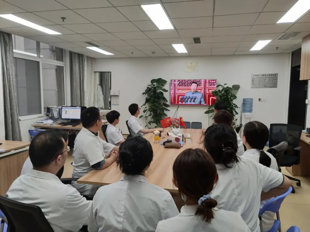 ▲临床二支部医生办公室观看大会
