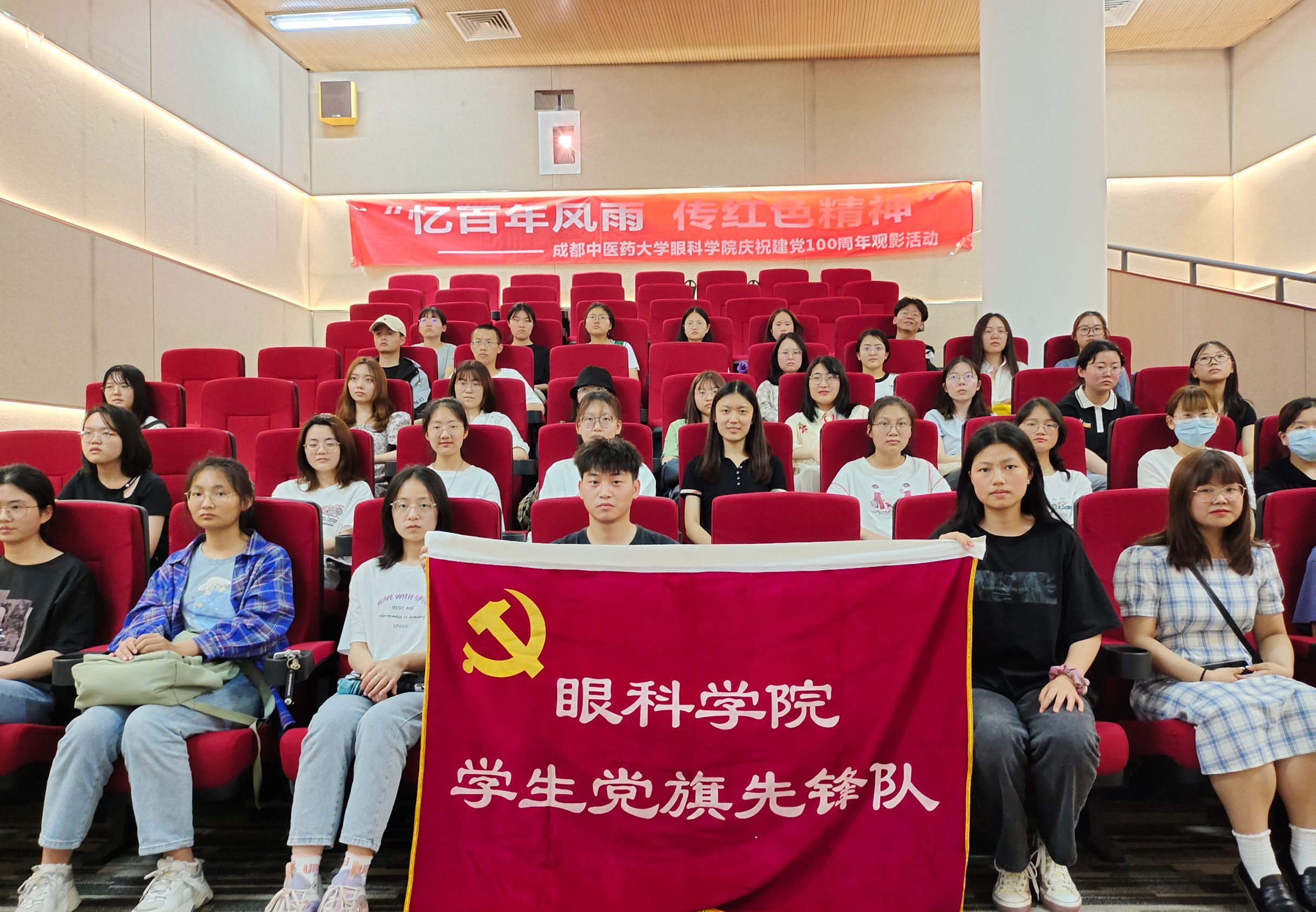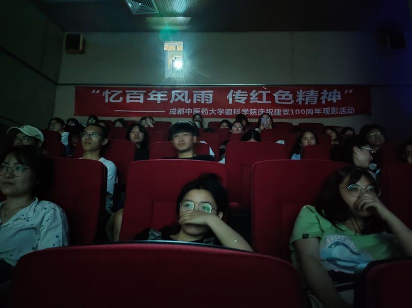 成都中医药大学眼科学院系列活动之"忆百年风雨,传红色精神"——大学生第二次观影活动于2021年5月13日晚在图书馆多媒体视听室"红色影院"开展进行。参加本次活动 的人员有学院分团委书记左晶老师,眼视光学2020级和18级的部分同学。