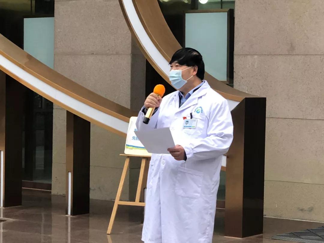 党委书记、院长段俊国为党员先锋志愿服务队授旗