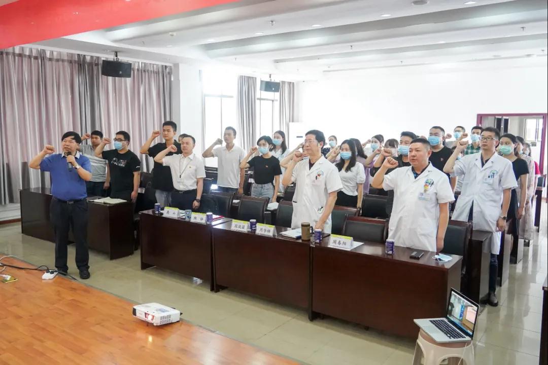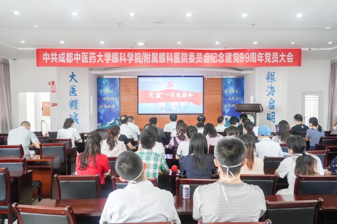 为纪念中国共产党成立99周年,继承发扬党的光荣传统和优良作风,激励眼科学院和眼科医院广大党员坚定理想信念,2020年7月1日16点,成都中医药大学眼科学院/附属眼科医院纪念建党99周年党员大会在我院六楼学术报告厅隆重举行。成都中医药大学眼科学院/附属银海眼科医院党委领导班子成员、全体党员、预备党员、发展对象、入党积极分子共计40余人参加会议,学生党员和入党积极分子62人通过线上直播进行了观看。会议由党委副书记陶铮主持。