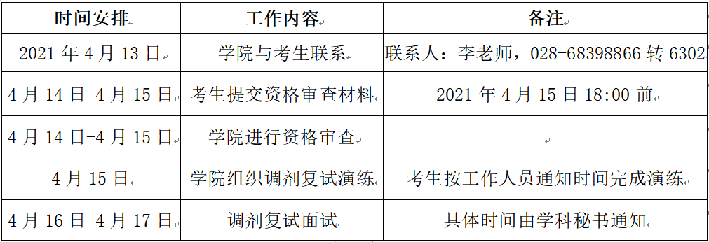 考生如对复试相关事项有疑问,可拨打电话028-68398866转6302进行咨询。考生如对复试及录取结果有异议,请在公示期间向学院纪检监察小组实名反映,申诉电话:028-68398866转6118。