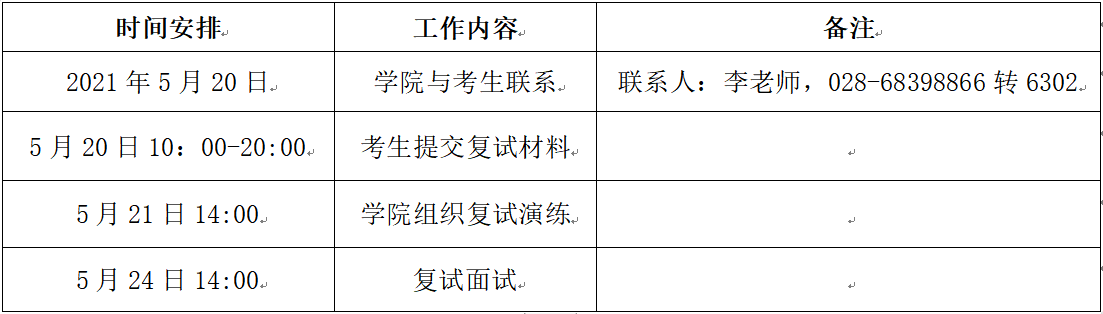 考生如对复试相关事项有疑问,可拨打电话028-68398866转6302进行咨询。考生如对复试及录取结果有异议,请在公示期间向学院纪检监察小组实名反映,申诉电话:028-68398866转6118。