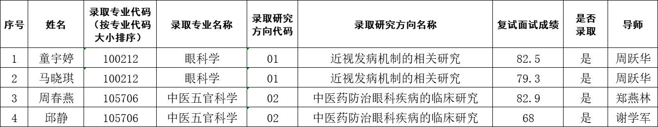 成都中医药大学眼科学院2022年推免生复试成绩公示(第一批)