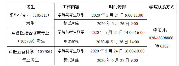 根据成都中医药大学硕士研究生招生复试工作办法要求,结合我院实际情况,经招生复试工作小组研究制定复试录取工作实施细则如下: