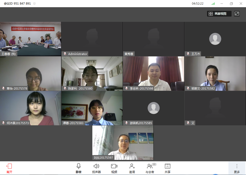 本次在线答辩圆满完成得益于成都中医药大学校领导高度重视,答辩委员严格把关,答辩组工作人员认真负责,以及全体参与答辩研究生的精心准备。毕业新体验,答辩线上见,医学界的凝心聚力在这次答辩工作中得到完美体现。