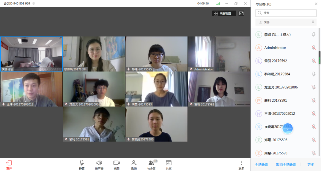 答辩硕士研究生线上截屏合影