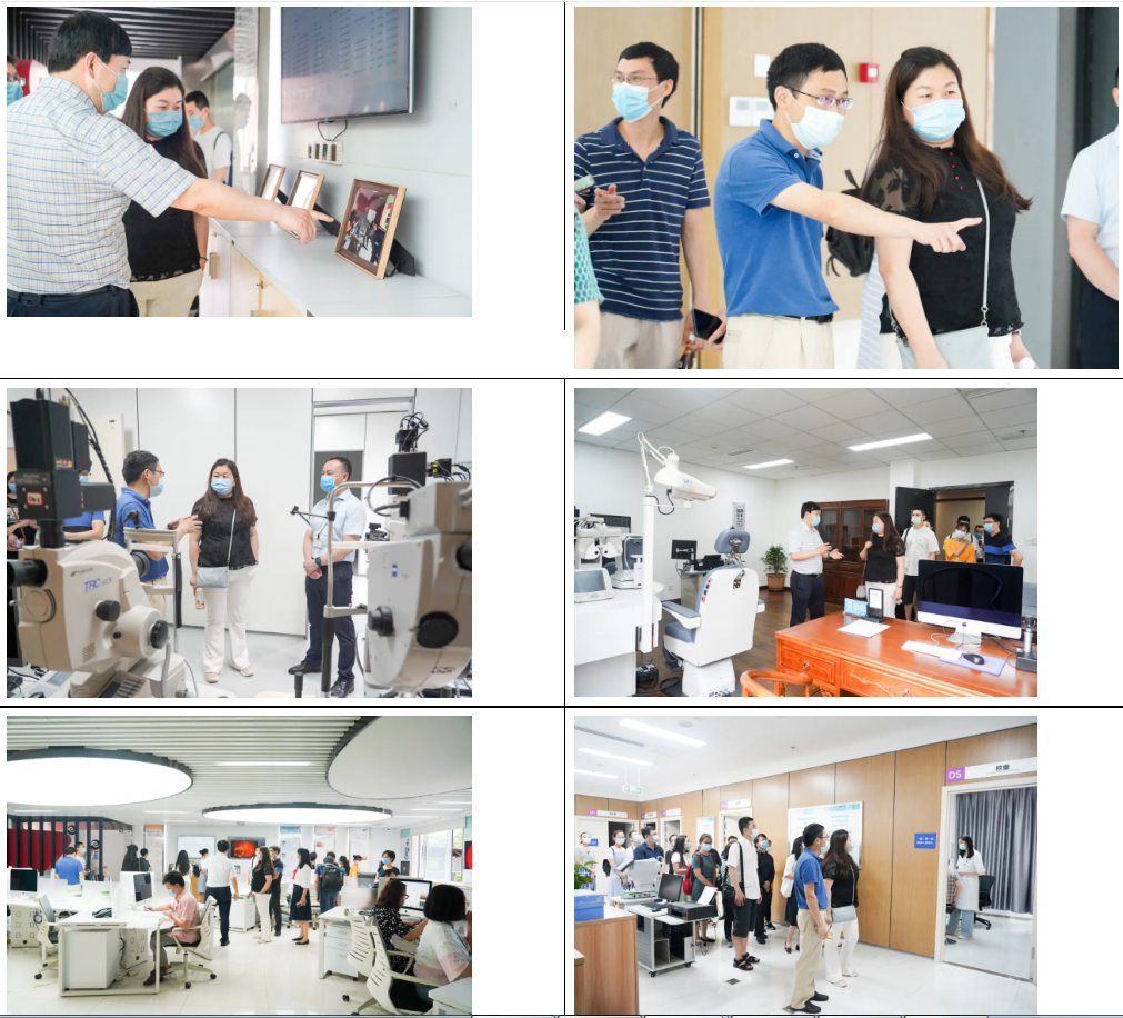 为深入贯彻落实成都中医药大学《关于"传承精华,守正创新,推进‘双一流’高质量建设"大讨论的意见》精神,扎实开展学科交叉合作研究,联合培养交叉学科专业化创新型人才,共同促进中医药传承创新发展,6月15日上午,成都中医药大学针灸推拿学院院长曾芳、副院长杨馨、副院长唐勇一行18人院赴我院开展学科交叉大讨论调研活动。成都中医药大学眼科学院/附属银海眼科医院党委书记/院长段俊国、副院长袁晓辉、副院长谢静、党委副书记陶铮、科教学生工作部主任张富文等陪同参观并参加座谈会议。成都中医药大学资产管理公司总经理权可富、国医馆馆长田小平出席座谈会。
