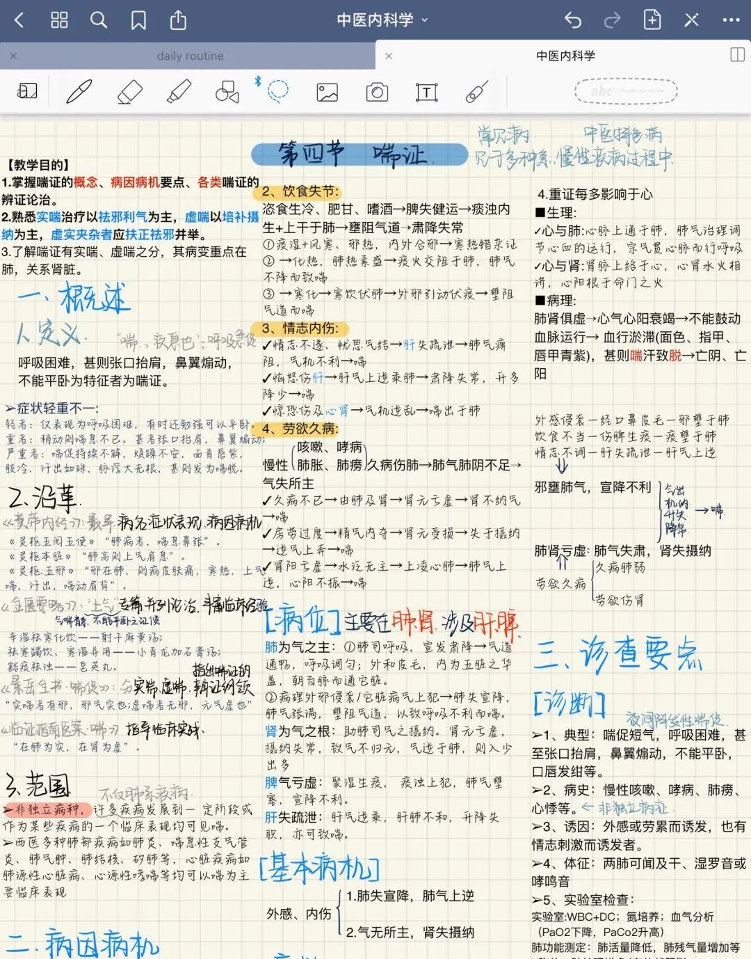 疫情使得我们无法回到学校学习,但杨诗蕊同学的这份笔记却让我们感受到了浓厚的学习的氛围。"中医内科学"五个字具有丰富的知识底蕴,详细且具有条理的笔记彰显出她对待学习的认真。