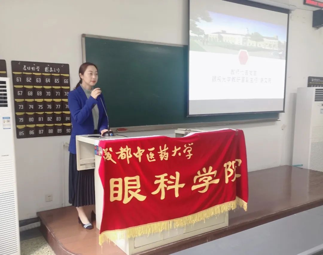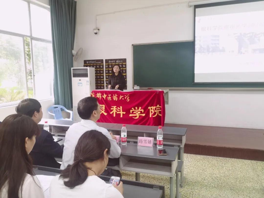 随后,眼视光学教研室副主任谢艾芮老师以自己的亲身经历介绍眼视光学,她表示,眼视光学是一个朝阳学科,未来前景广阔,希望同学们充满信心,要敢于去直面未来将会遇到的挑战。
